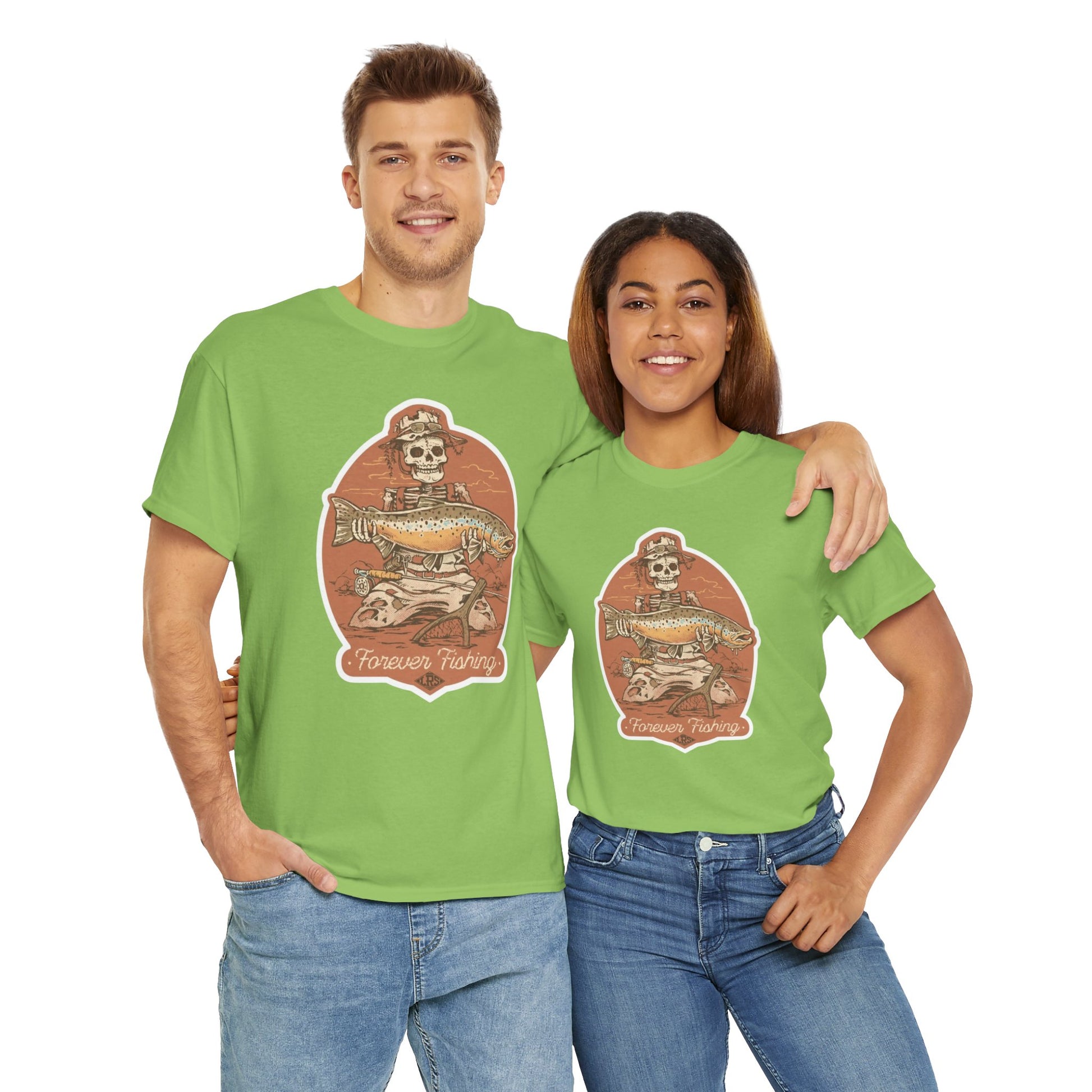 Skeleton forever fishing unisex heavy cotton t-shirt